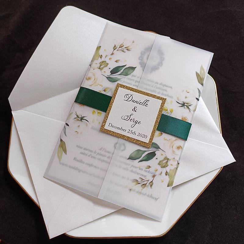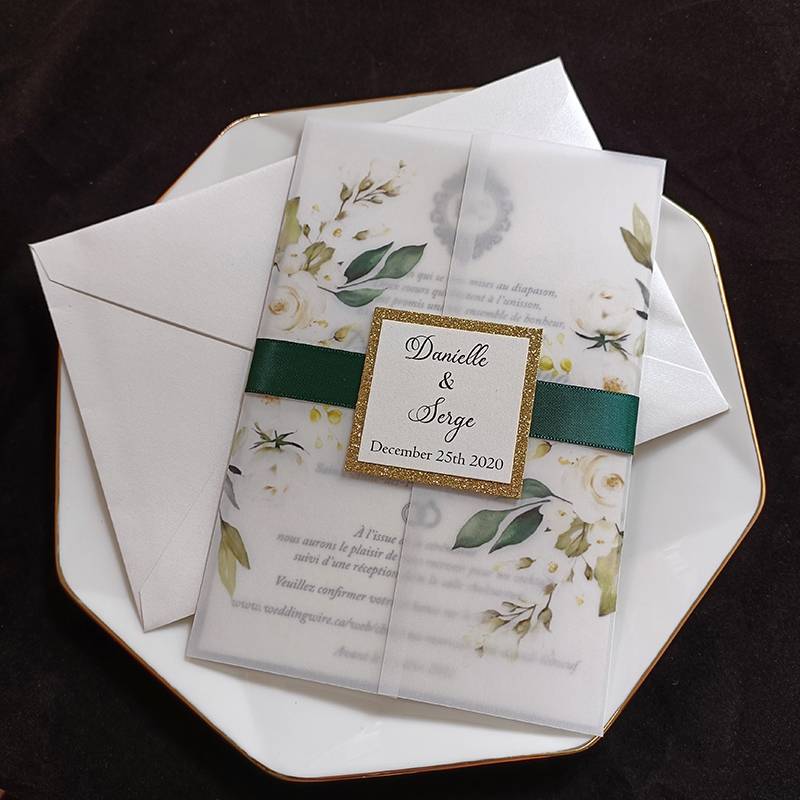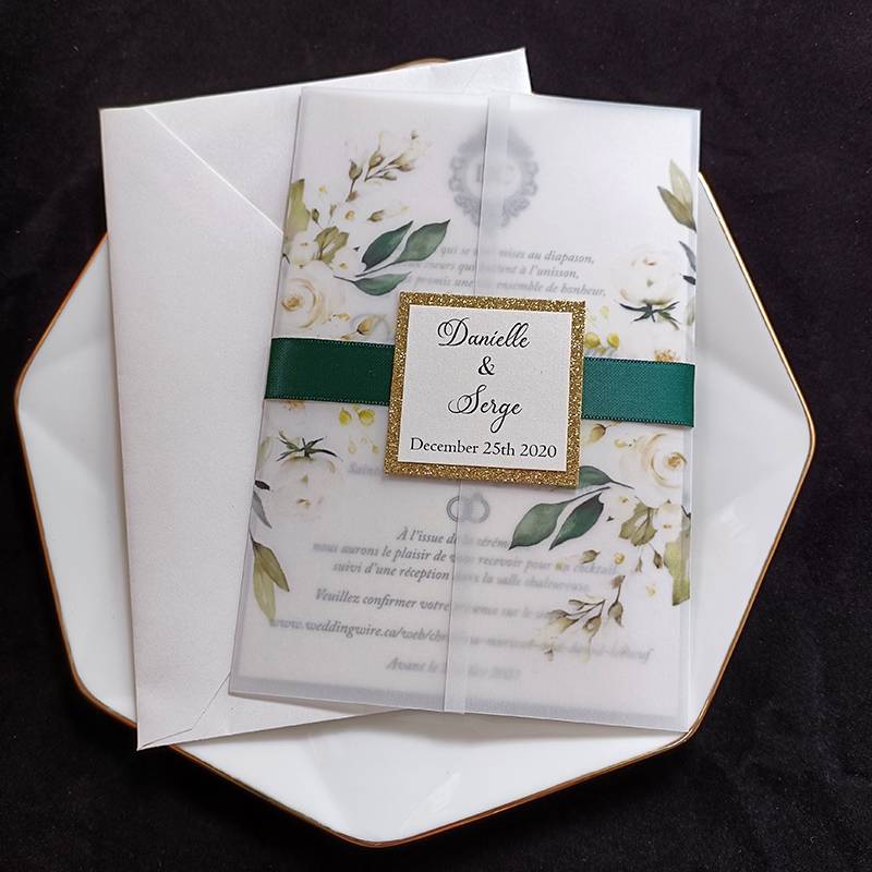 1 Full Set Includes(Blank Insert/Customized Insert):*1 vellum jacket wrap with flower printed