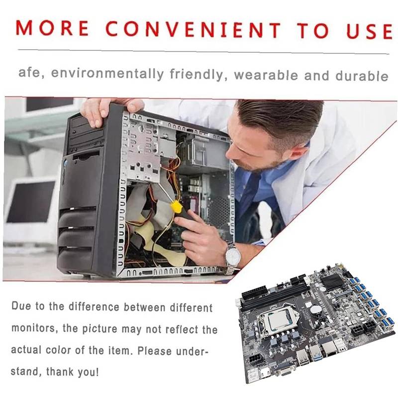 Материнская плата B75 USB-BTC использует цельные конденсаторы, чтобы сделать материнскую плату более стабильной;