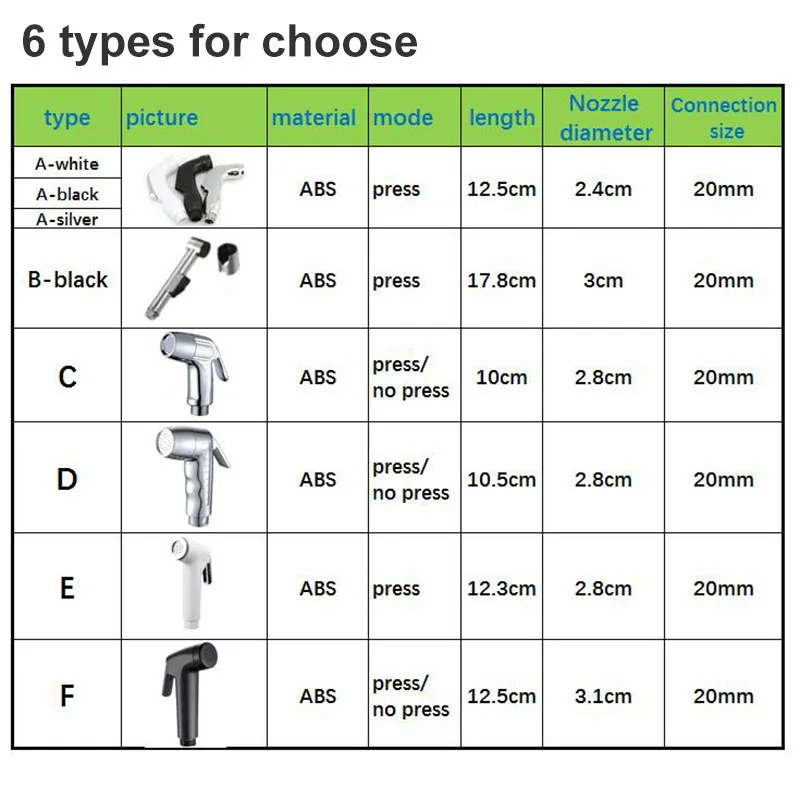 5 типов ABS пластиковый Туалет Биде Распылитель насадка для душа ручная мусульманская ванная туалет водопроводный кран спрей ducha Анальная мойка для домашних животных