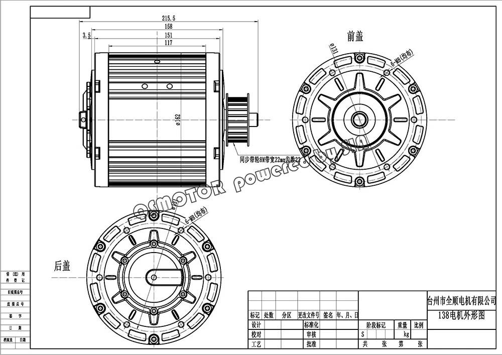QS 3 кВт 138 двигатель среднего привода (старый внешний вид, дизайн ремня)