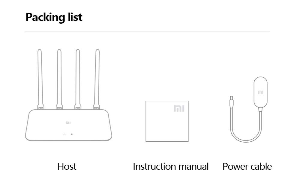Роутер Xiaomi поддерживает IPTV,L2TP и PPPOE? Нет, не поддерживайте. Примечание: маршрутизатор xiaomi 4A-это китайская версия, мы предлагаем вам скачать приложение Mi Home, чтобы установить маршрутизатор, если вы не можете понять китайское руководство. Гигабитная версия Xiaomi Router 4A имеет двойной процессор, гигабитный сетевой доступ и 4 антенны с высоким коэффициентом усиления. Большая память 128 Мб и 1167 Мбит/с обеспечивают высокую производительность. Умное управление через приложение может эффективно предотвратить сдавливание Wi-Fi. Это абсолютно превосходный выбор для вас. Особенности:Двухъядерный процессор для более быстрой скорости сетиЧетырехъядерный процессор с четырехъядерным процессором, частота одного ядра может достигать 880 МГц. Высокая производительность легко поддерживает гигабитную сеть и двухдиапазонную передачу данных Wi-Fi. Беспроводной двухдиапазонныйПоддержка 2,4 ГГц и 5 ГГц двух частотных диапазонах. Максимальная скорость может достигать 1167 Мбит/с. 2,4 ГГц браслета поддерживает больше, еще более широкое освещение и внутристенный производительности. Диапазон 5 ГГц использует технологию 802.11ac. Меньше помех, высокая скорость. Смотрите HD видео и играйте в гладкую игру. Два диапазона делится одним WiFi именемМаршрутизатор Xiaomi 4A поддерживает два диапазона. Сочетает в себе 2,4 ГГц и 5 ГГц в одно имя Wi-Fi. 2,4 ГГц имеет лучшую внутристенный производительность и Wi-Fi 5 ГГц имеет более высокую скорость. 4 антенны с высоким коэффициентом усиления для более сильного сигнала4 внешних всенаправленных антенны с высоким коэффициентом усиления. Чрезвычайно улучшает производительность передачи и отлично работает в различных сложных условиях. Большая память 128 МбУмный бытовой прибор era. Больше устройств нуждаются в стабильном подключении. Xiaomi router 4A использует память 128 Мб, которая обеспечивает стабильную передачу. Интеллектуальный расчет коррекции ошибокЧастота 5 ГГц поддерживает LDCP расчет коррекции ошибок. Повышает эффективность защиты от помех. Повышение сигнала Wi-Fi и повышение скорости передачи Посылка:1 * маршрутизатор1 * Адаптер питания1 * Руководство пользователя