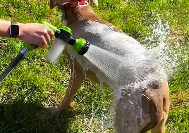 Все, что вам нужно, это садовый или душевой шланг, шампунь для собак любого типа-и Грязный Щенок!