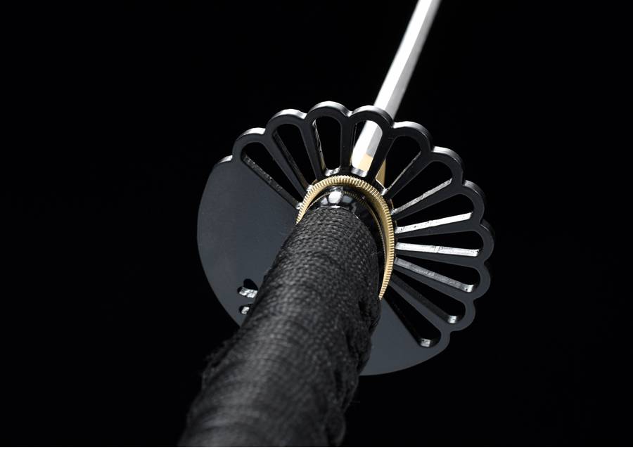 TSUKA:Ядро Tsuka (ручка) деревянное и плотно обернуто на настоящую белую кожу rayskin синтетическим шелком Ito. Фучи (рукав) и Кашира (пуговица) изготовлены из железа. Tang Catana обеспечивается двумя Mekugi (peg). Две медные Menuki (орнамент) находятся на каждой стороне Tsuka.