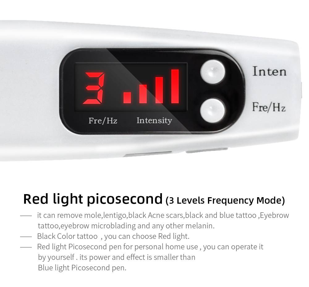 -Красный светильник Picosecond pen для личного домашнего использования, вы можете управлять им самостоятельно. Его мощность и эффект меньше, чем синий светильник Picosecond pen