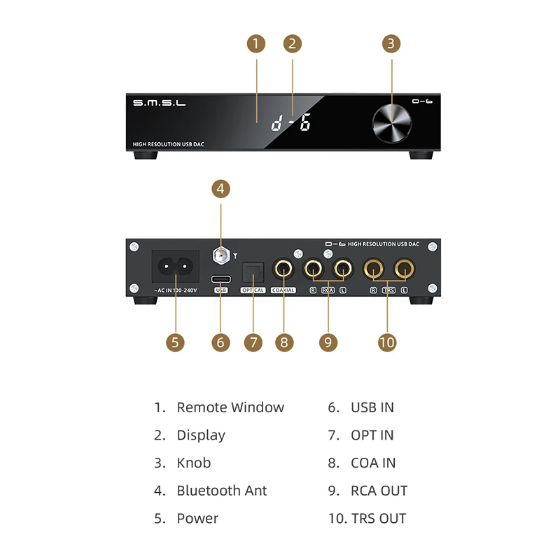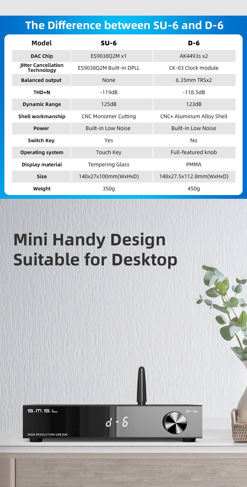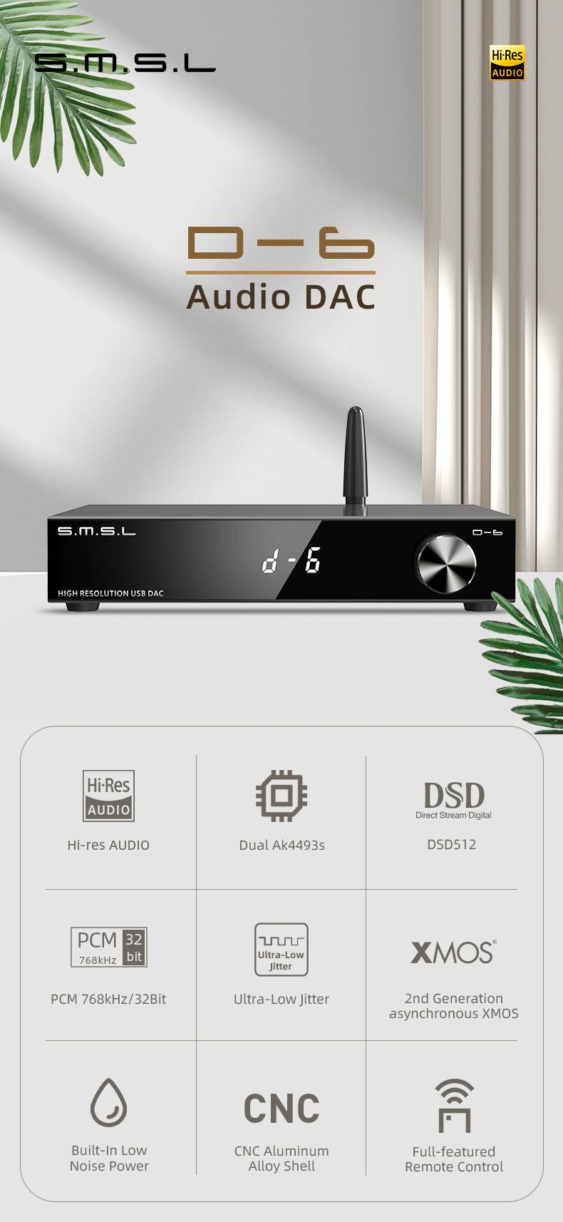 SMSL D-6 AK4493S * 2 DAC USB C XMOS DSD512 PCM 768kHz 32Bit QCC5125 Bluetooth 5,1 LDAC HiFi аудио декодер Type-c коаксиальный вход