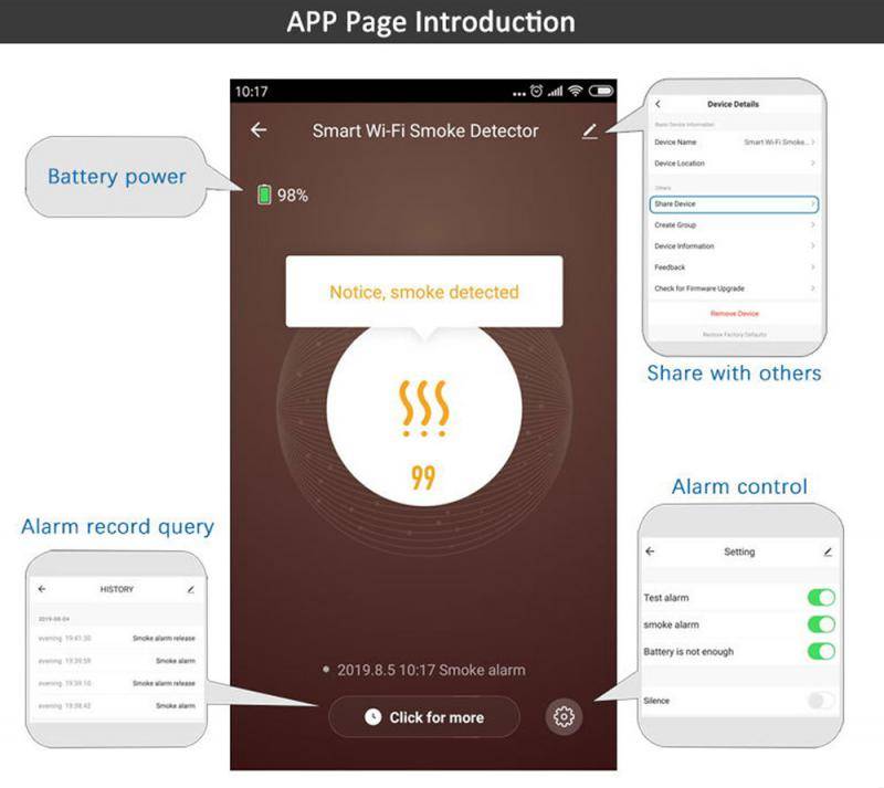 4. 【Напоминание о мобильном приложении вы будете оповещены немедленно в случае пожара, чтобы помочь вам избежать пожарной опасности во времени.