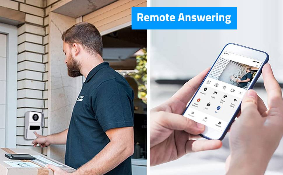 Беспроводной дверной звонок легко разговаривает с посетителями через приложение, которое поддерживает IOS/Android смартфоны и планшеты. Поддержка удаленного разблокирования, мониторинга, двусторонней связи, записи видео и т. д.Вы можете ответить на дверь в руке.