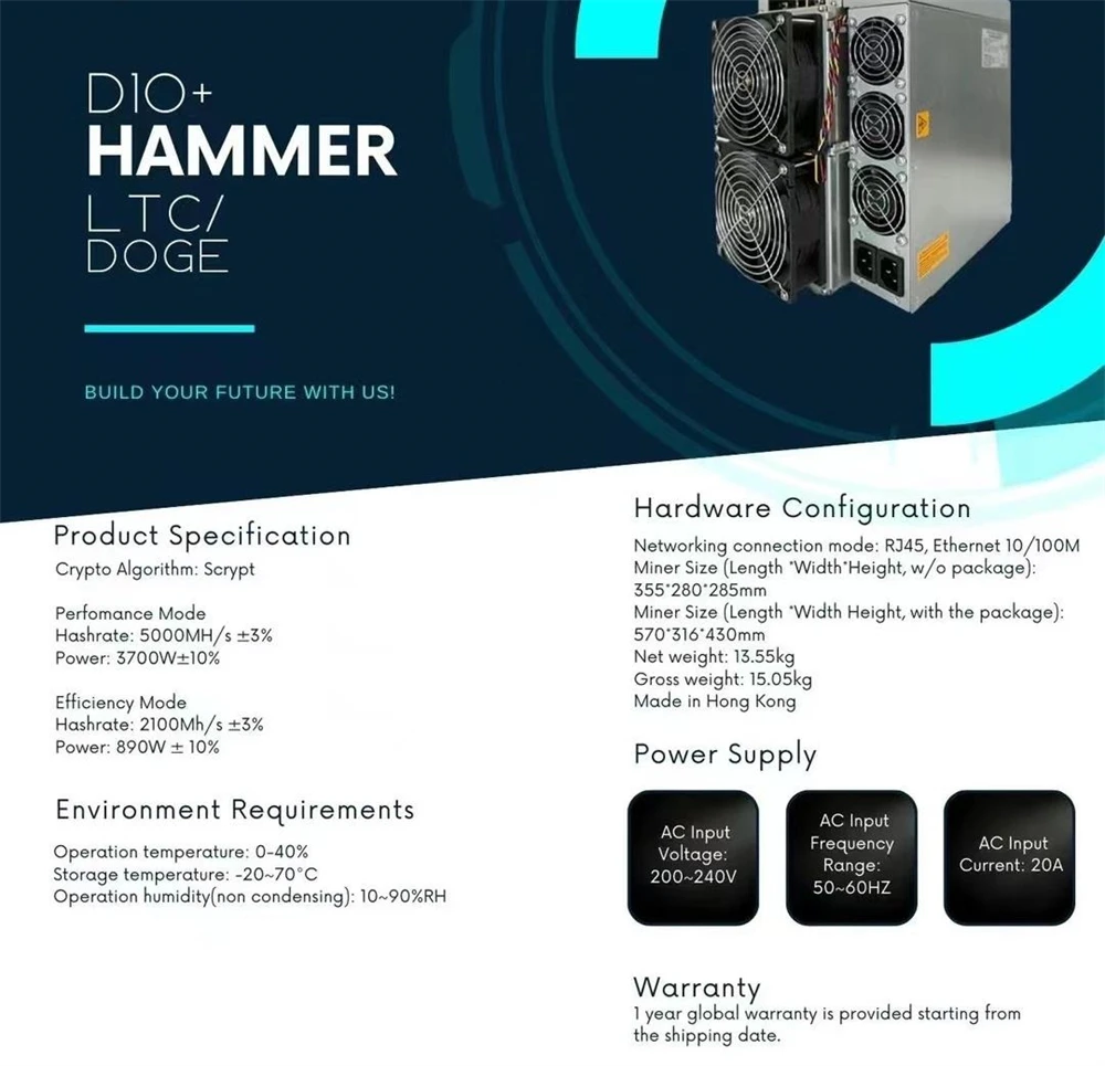 Молоток D10 +, LTC/DOGE miner, в наличии.