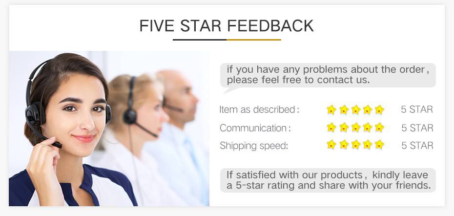 Your ваше подтверждение будет высоко оценено после получения товаров. Как только вы получили товар, надеемся, что вы оставите нам положительный отзывы (4 или 5 звезд). -Прежде чем оставлять негативные отзывы. Сначала свяжитесь с нами, и мы поможем вам решить проблему.