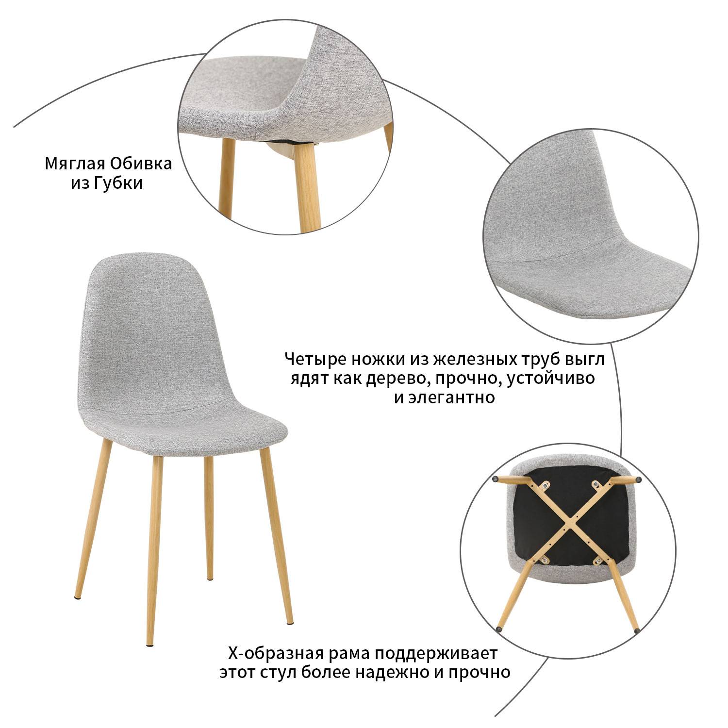 Эргономичный дизайн- Спинка соответствует эргономическим стандартам и характеристикам человеческого тела. Сиденье стула обито мягкой губкой и гарантирует, что вы будете чувствовать себя комфортно и расслабленно во время сидения. Устойчивые металлические ножки-Четыре ножки изготовлены из прочного, долговечного и высококачественного металла и прочно прикреплены к сиденью и столешнице обеденной группы. Кроме того, они обработаны изысканной деревянной отделкой и не скользящими резиновыми накладками.