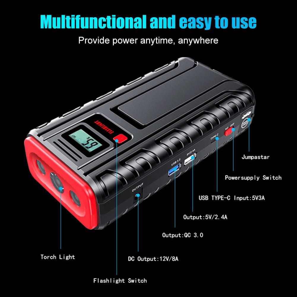 * 1. Портативный автомобильный стартер 2000A (пик 4000A) для большинства транспортных средств.