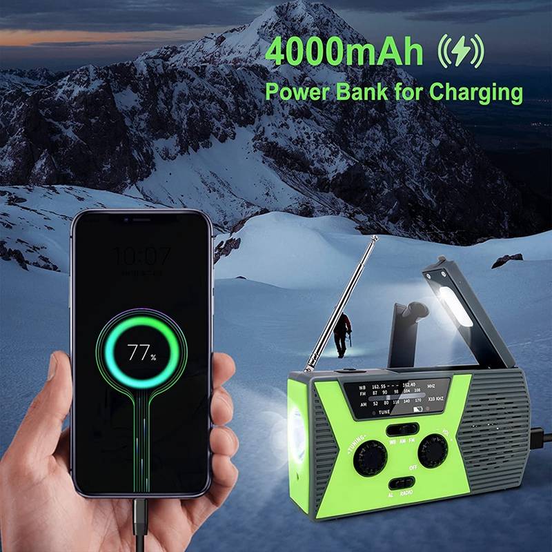 Внешний аккумулятор 2000 мА · ч: портативное радио имеет встроенный аккумулятор 2000 мА · ч с дополнительным длительным временем работы. Это солнечное радио может заряжать мобильные телефоны и другие устройства через USB. Если вы нажмете на сбой питания или вам нужно зарядить на открытом воздухе, наше радио может вам помочь. Особенно в экстремальных погодных условиях, таких как наводнения, извержения вулканов и сильные осадки, наши радиостанции могут использоваться как внешний аккумулятор и светодиодный фонарь, большой кусок аварийного оборудования.