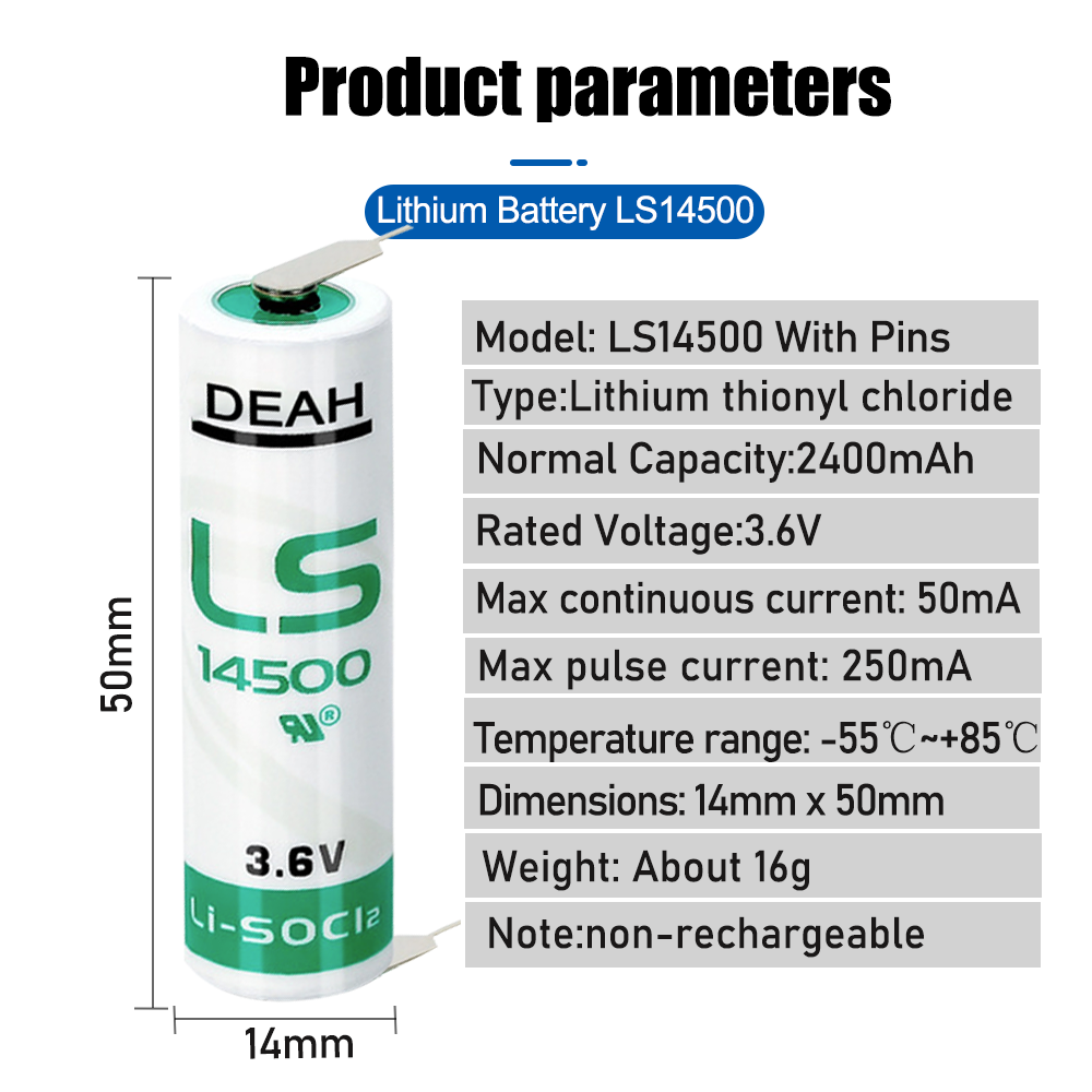 1 шт. LS14500 14500 ER14505 TL5104 2600mAh 3,6 V Li-SOCl2 Батарея со шпилькой для станка с ЧПУ PLC промышленный Управление начальной Батарея