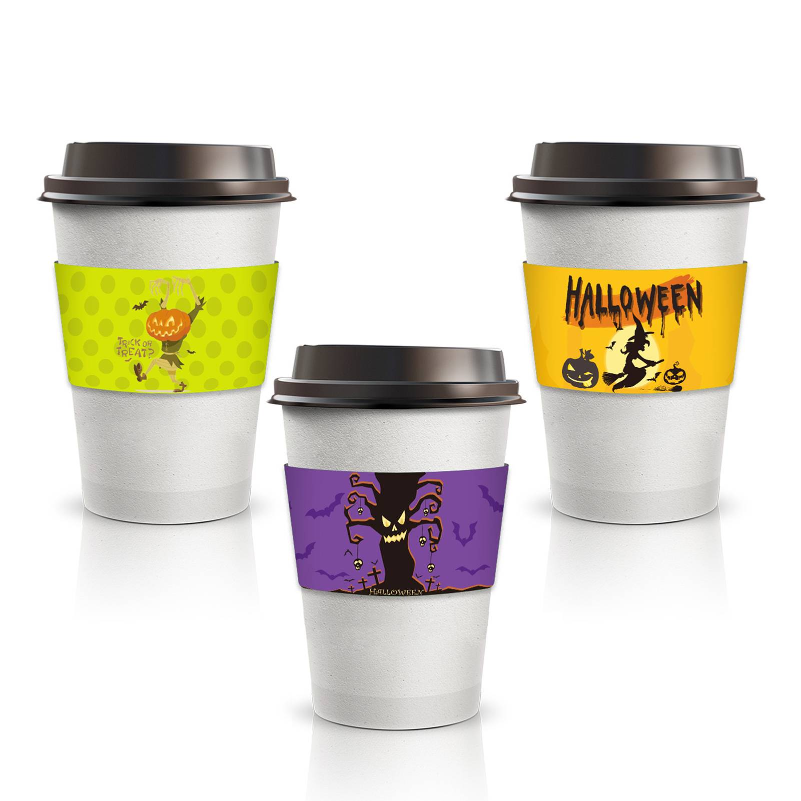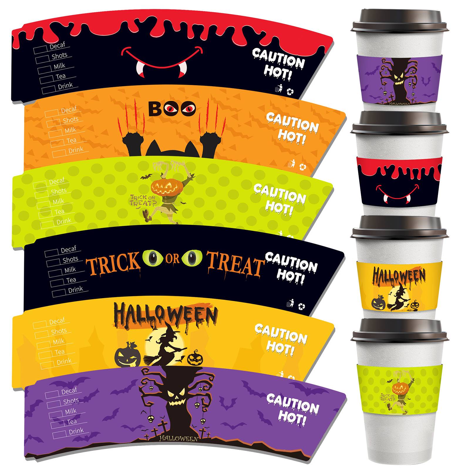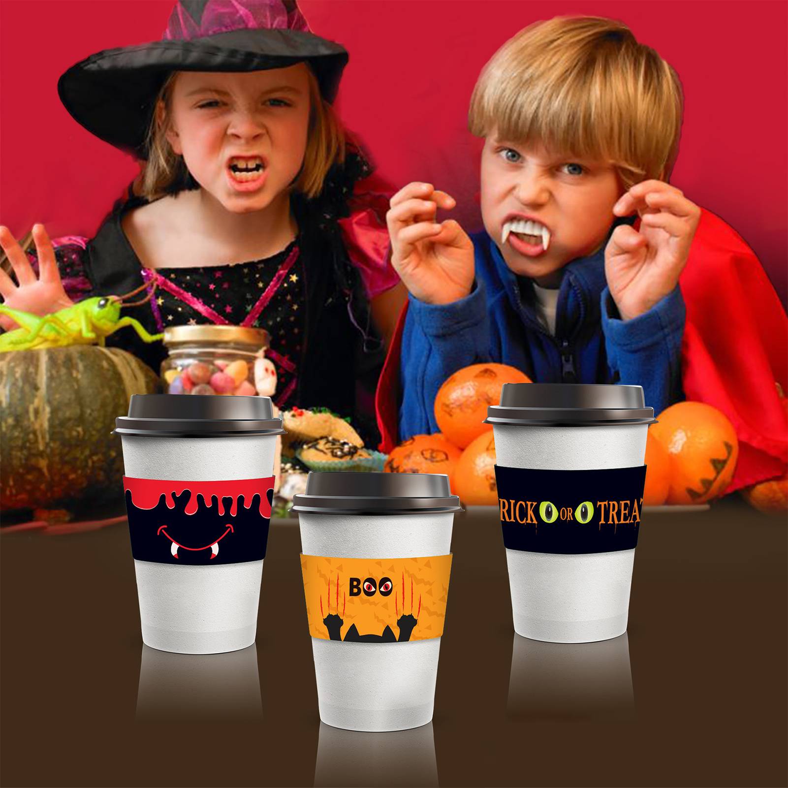 Рукава для кофейных чашек на Хэллоуин изготовлены из высококачественного материала из крафт-бумаги, предназначены для изоляции и вторичной переработки, идеально подходят для вечерние принадлежности, обеды, пикников и карнавалов.