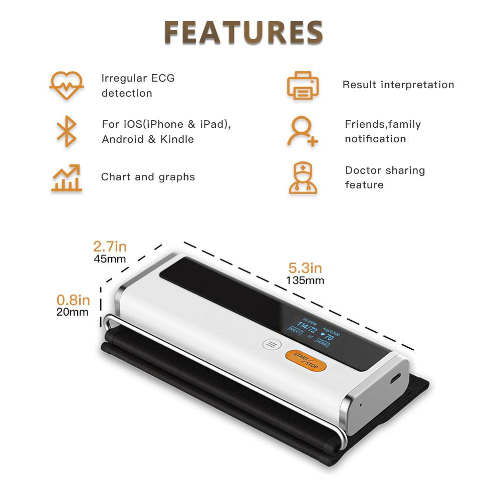 Беспроводной Bluetooth Монитор артериального давления с функцией ЭКГ Автоматическая цифровая BP машина пульса ЭКГ Поддержка USB зарядка
