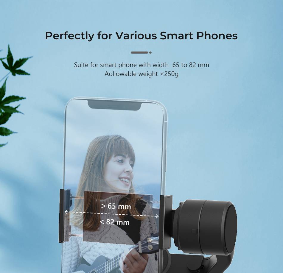 Универсальный: он может идеально работать с мобильными телефонами, чтобы делать стабильные и гладкие фотографии и видео. Поддержка iPhone, Samsung, Galaxy, Huawei и т. Д.