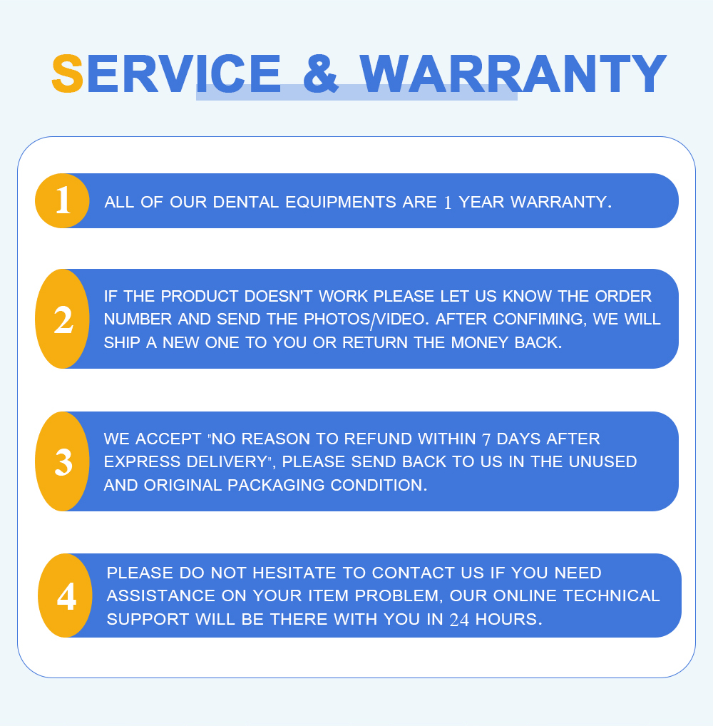 1. Все наши стоматологические оборудования 1 год гарантии.