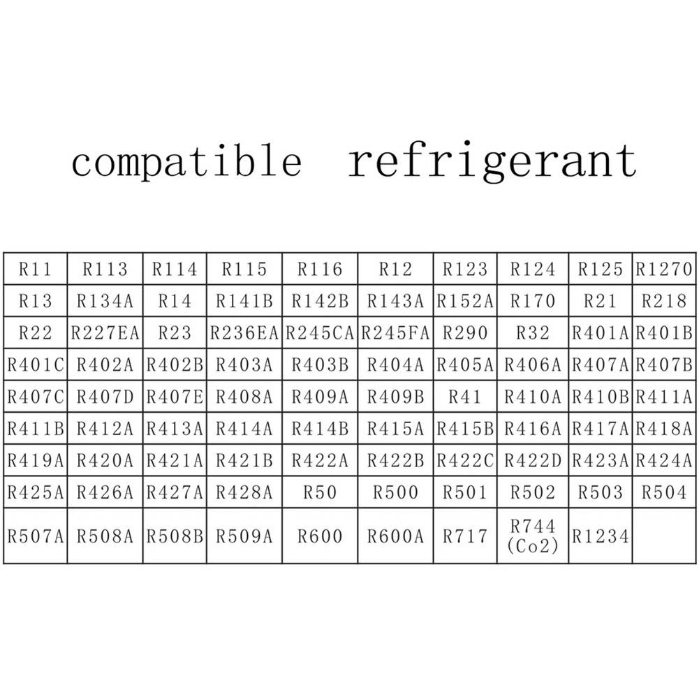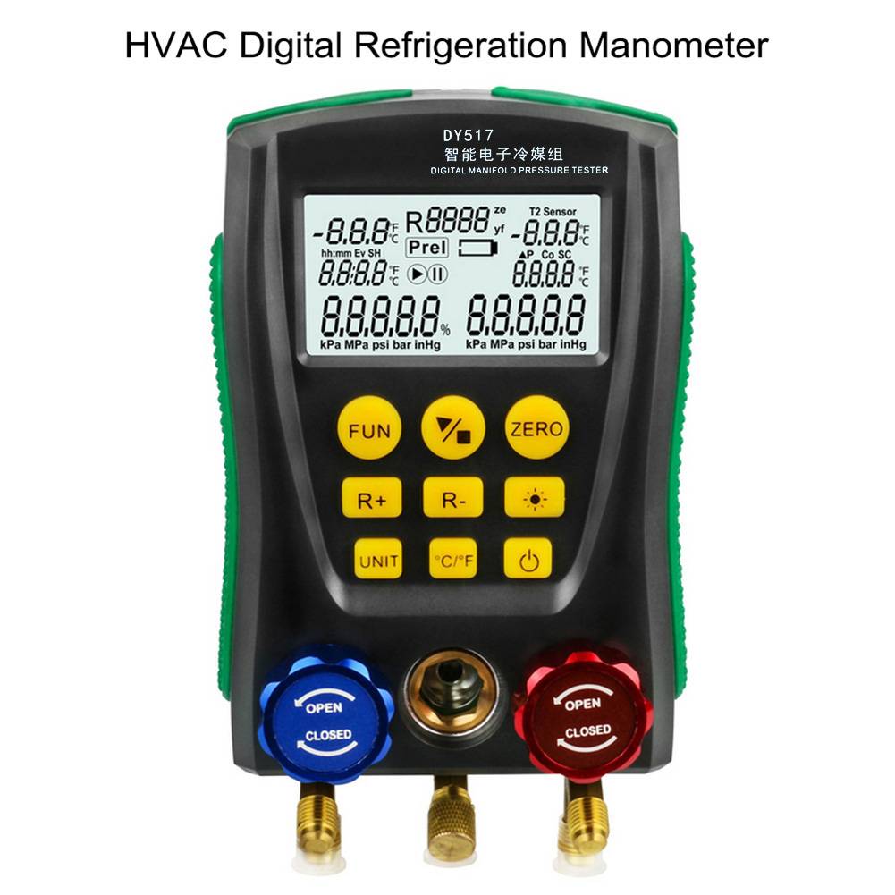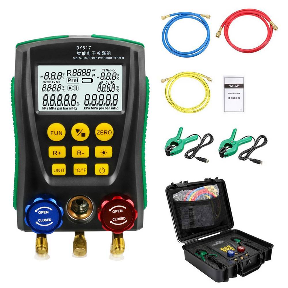 Интеллектуальный электронный хладагент-это вспомогательный инструмент для установки, тестирования и обслуживания холодильного оборудования, такого как кондиционеры и холодильное хранилище. Прибор имеет двойной тест давления, двойной температурный тест (нужен тестовый зажим, не входит в комплект), цифровое считывание, многофункциональное переключение, многофункциональная функция и встроенная база данных хладагента. В приборе используются высокопрочные инженерные пластмассы и гибкий нескользящий Силиконовый дизайн, вся машина прочная и удобная для удержания. Встроенный 32-битная цифровая обработка блок и высокой точности система сбора и обработки данных блок, которые ставят высокие данные и стабильности во всем мире. Большой размер жидкокристаллического дисплея, ЖК-дисплей задняя светильник поддержки, отображение данных четкий и удобный для чтения, удобный светильник операции. Долговечный клапан, 1/4 дюймовый стандартный дизайн интерфейса для обеспечения долговечности и универсальности прибора. Прибор может измерять двойное давление (манометрическое давление) одновременно, а также двойное измерение температуры (требуется тестовый зажим, не входит в комплект), с автоматическим мульти-единичным преобразованием давления, автоматическое преобразование температуры Цельсия/Фаренгейта, чтобы облегчить различные потребности. Встроенный 89 видов хладагента давления-испарения температуры базы данных, также рассчитать перегрев охлаждения, чтобы облегчить прямое считывание данных рабочих процессов. Также он проверяет процент измерения вакуума; Измерение утечки давления, запись Скорости времени утечки. Заслуживает того, чтобы этот многофункциональный, точный и просто управляемый цифровой коллектор позволял вам делать работу правильно. Особенности: EC/EN61010-1 стандарты безопасности для проектирования и производства. 1) давление, измеренное цифровым манометром, является манометром. 2) Диапазон испытаний давления от-101кпа до 6мпа (-0.1бар до 60бар). 3) Предельное давление 10 МПа (100 бар). 4) Максимальное рабочее давление стандартного шланга составляет 600 фунтов на кв. дюйм (приблизительно 4,13 МПа, 41,3 бар). Предельное давление составляет 3000 PSI приблизительно 20,68 МПа, 206,8 бар). 5) Пожалуйста, подтвердите номинальное значение давления тестируемого оборудования перед тестированием. Не используйте его, если он превышает диапазон инструмента. Также для DY517A, если упакован Шланги не соответствуют требованиям к давлению, вы можете использовать подходящие замены для тестирования. 6) не используйте и не храните прибор при высокой температуре, высокой влажности, легковоспламеняющихся, взрывоопасных и сильных электромагнитных полях. 7) Пожалуйста, не изменяйте внутреннюю цепь прибора, чтобы избежать любого повреждения инструмента или опасности. 8) Пожалуйста, носите квалифицированное защитное оборудование для защиты пользователя во время тестирования. 9) Пожалуйста, используйте прибор в хорошо проветриваемой среде для предотвращения вдыхания токсичных газов. Характеристики: Размеры: 170*110*50 мм/6,69*4,33*1,97" Вес: 950 г Испытание на давление: манометр Единица измерения давления: кПа; МПа; Бар; Инхг; PSI. Диапазон измерения давления: 0 кПа ~ 6000 кПа Разрешение испытания на давление: 1 кПа Давление тест точности: +/-0,5%(FS)+ 5dgt Предел перегрузки давления: 10000 кПа 