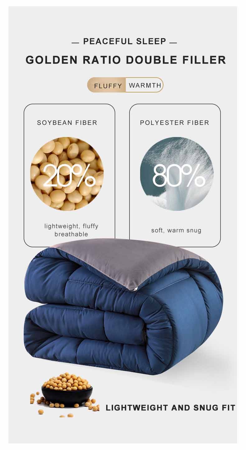Утолщенное хлопковое стеганое одеяло из соевого волокна делает одеяло очень мягким и пушистым. Нет шума, более дышащий, нет слез или страшного запаха.