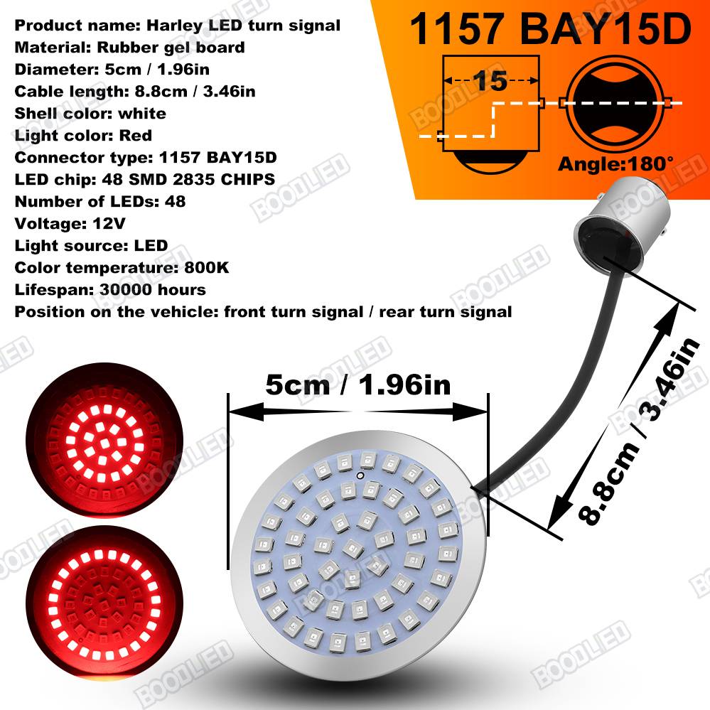 Это послепродажный светодиодный комплект указателей поворота, совместимый с Harley Davidson Dyna, Street Glide, Fat Boy, Softail , Road King , Road Glide , Electra Glide , Tri Glide, sportster и другие модели с 2 дюймовыми пулевыми сигнальными лампами и 1157 двумя контактными лампами.