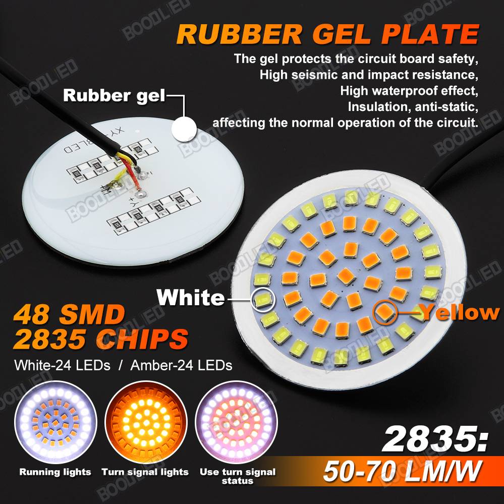 Функции: 2 ”светодиодный индикатор указателя поворота с 1157 двойными контрактами штепсельной вилки, переключаемым режимом, передними сигнальными лампами поворота, белый ходовой светильник и янтарный токарный сигнал;