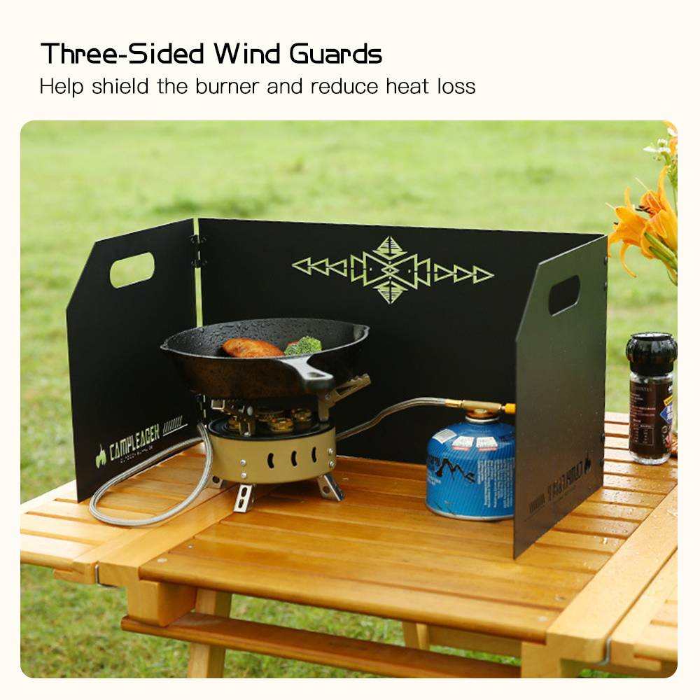 3-сторонняя дизайн защищает ваш плита от ветра для того, чтобы уменьшить потерю тепла и максимизировать эффективность сжигания.