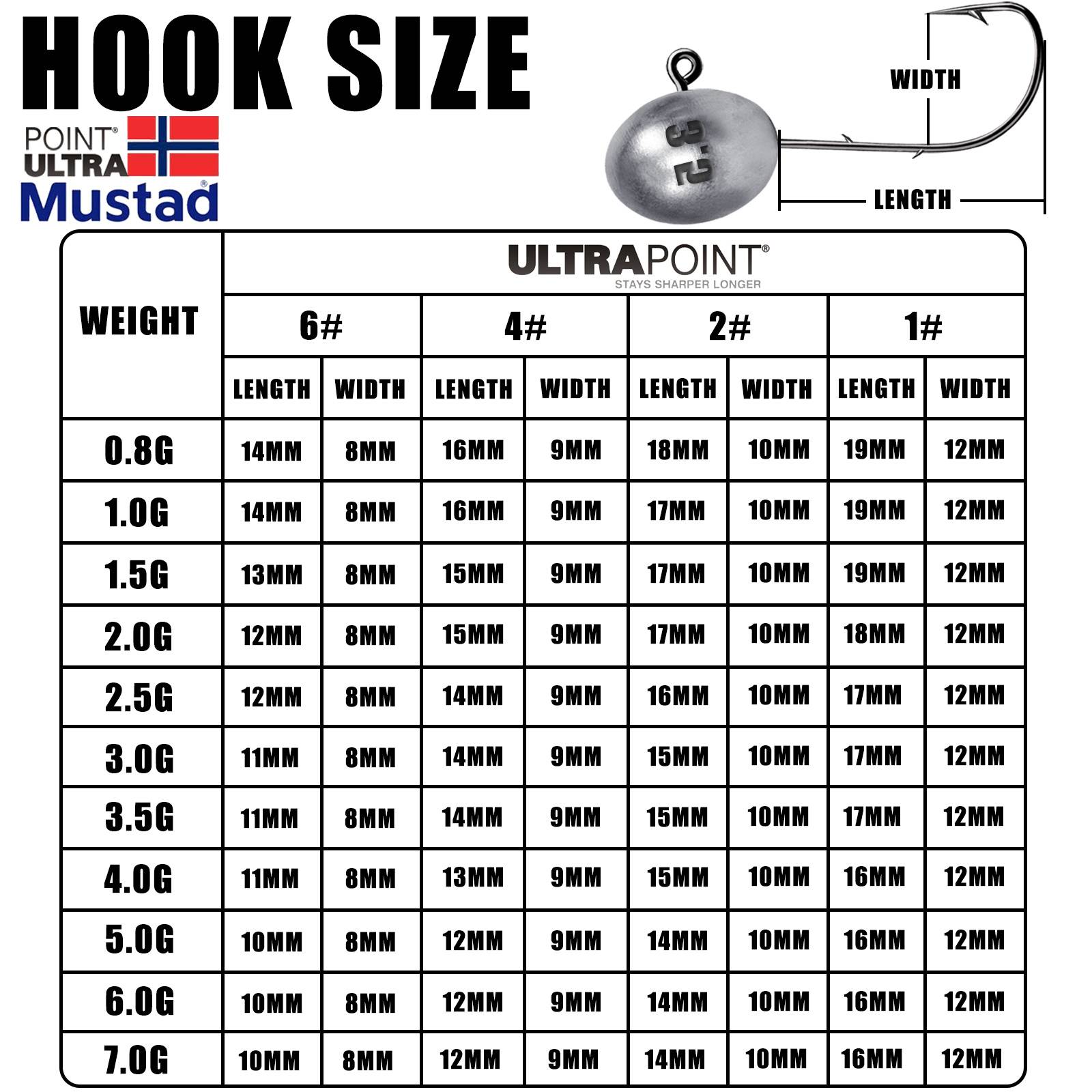 Вес головки Джига: 0,8 г/1,0 г/1,5 г/2,0 г/2,5 г/3,0 г/3,5 г/4,0 г/5,0 г/6,0 г/7,0 г