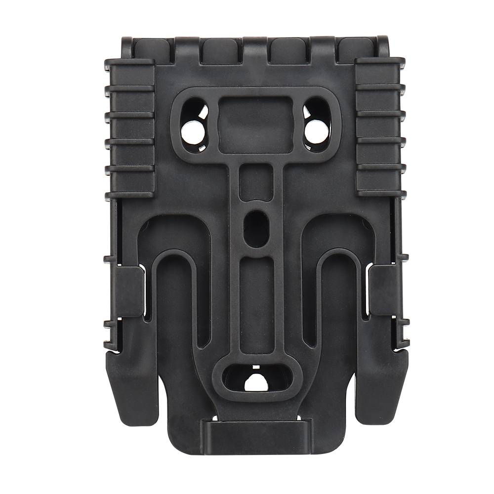 Мужская/Женская пара QLS, показанная здесь, может быть установлена на любую комбинацию кобуры/задней части, которая позволяет быстро заменить кобуру на другую заднюю часть, содержащую QLS 22 по мере необходимости. Две части, QLS 19 и QLS 22 быстро и легко сползают вместе и блокируют, образуя твердое крепление между кобурой и UBL, тактическая ножка, Молле жилет, автомобильный тире, прикроватный столик или в любом другом месте, где вы устанавливаете пластину приемника.
