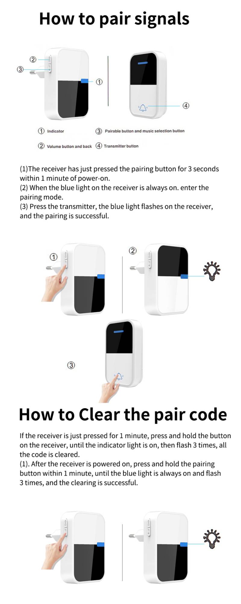 ✔Даже если сосед покупает тот же дверной звонок, он не будет звонить в серии. Используется технология обучения коду. Вам не нужно беспокоиться о натянутых линиях со следующей дверью. Вы также можете подобрать их в соответствии с вашими потребностями в домашнем использовании