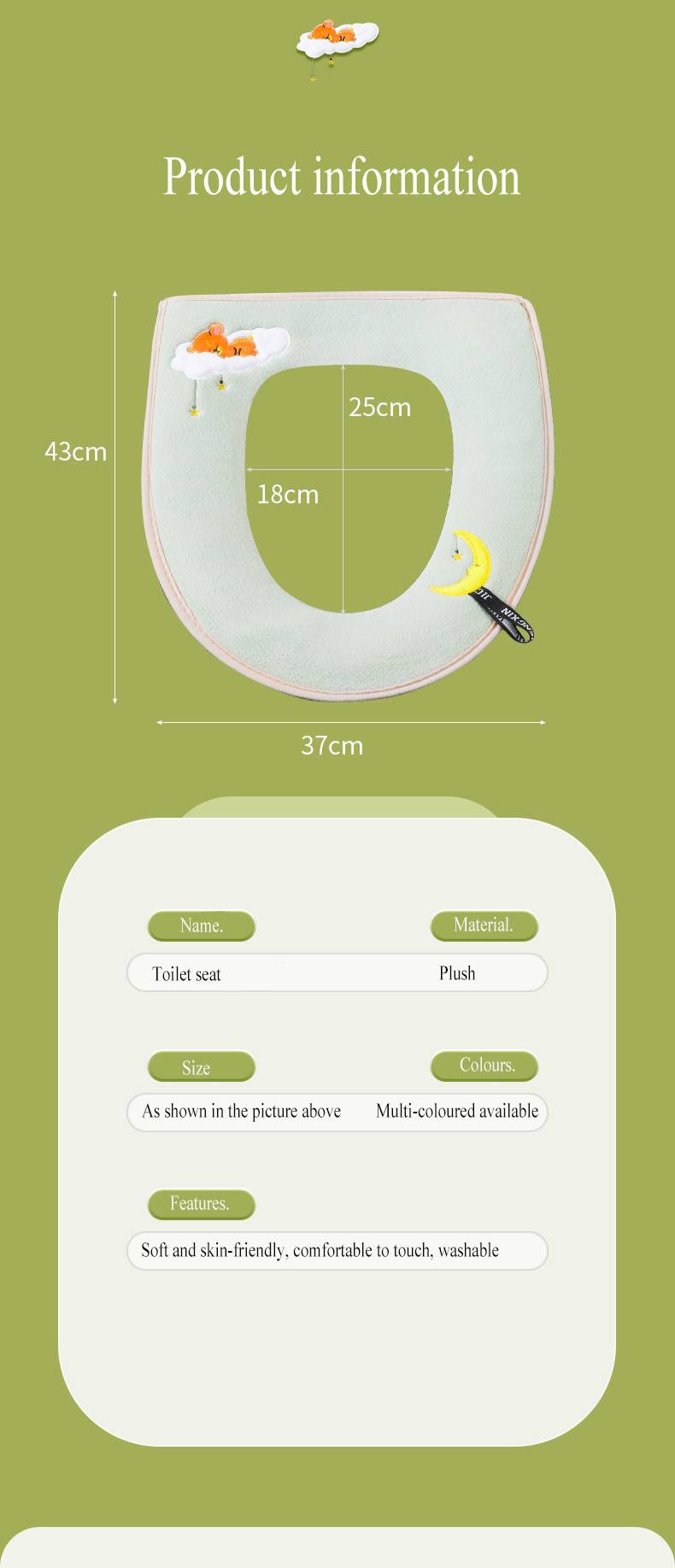 Особенности: мягкий и удобный, подходит для всех типов туалета, дизайн ручки, водонепроницаемая искусственная кожа, моющаяся