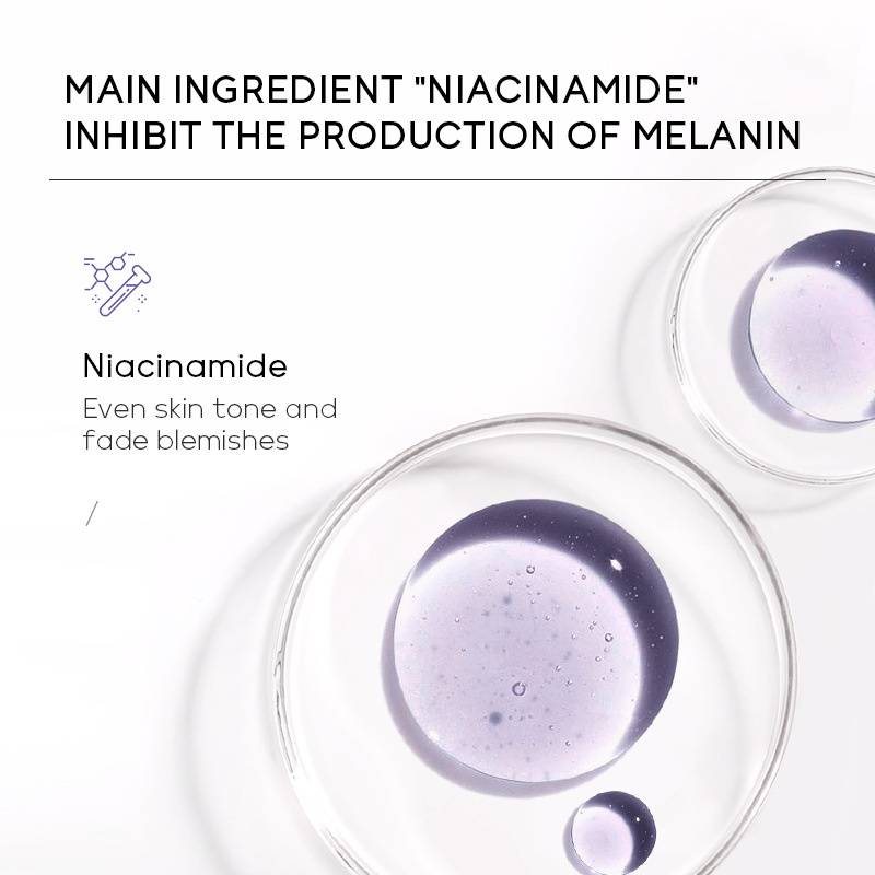 Essence сущность никотинамида: помогает бороться с черными пятнами, цветными пятнами, неровным тонусом кожи, пятнами, засорением пор и примесями, очищением пор, значительно уменьшает поры, И создает прозрачную и гладкую кожу.
