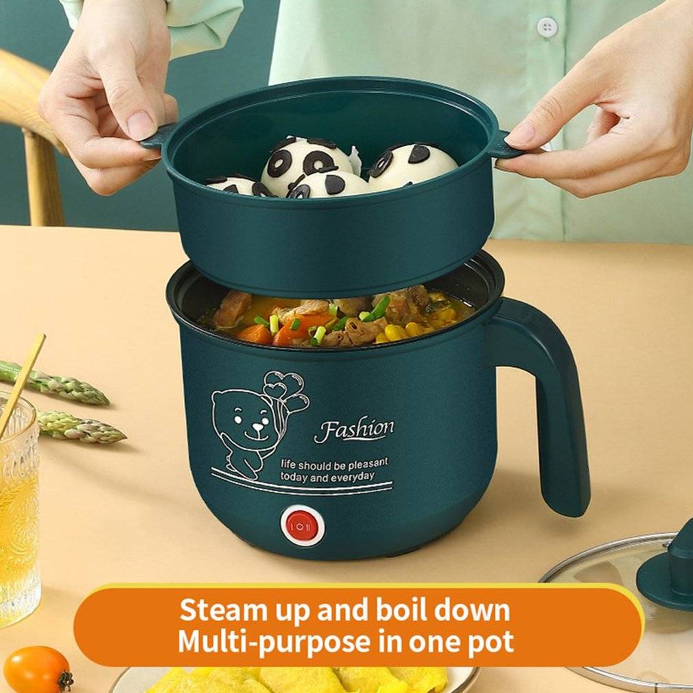 Этот многоцелевой горшок имеет емкость 1,8 л, двухслойная утолщенная пластиковая стойка для парения с двумя регулируемыми температурными режимами, противообжигающая ручка для нескользящей и теплоизоляции, И гладкое покрытие на антипригарном внутреннем горшке, чтобы предотвратить прилипание пищи. После использования легко чистить, с защитой от перегрева и защитой от сухого ожога для удобного хранения и портативности.