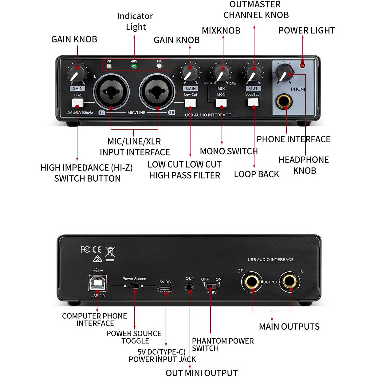 【 24 бит/192 кГц высокое качество звука 】 Максимальная частота дискретизации 24 бит/192 кГц качество записи звука, со всеми интерфейсами подключения для микрофона, электрогитары, басов и т. д. Обеспечивает студийного класса 24 бит/192 кГц аудио Разрешение невероятно красивое записи каждый раз. Они точно фиксируют детали каждого записанного сигнала, обеспечивая сохранность звука на протяжении всего процесса записи.