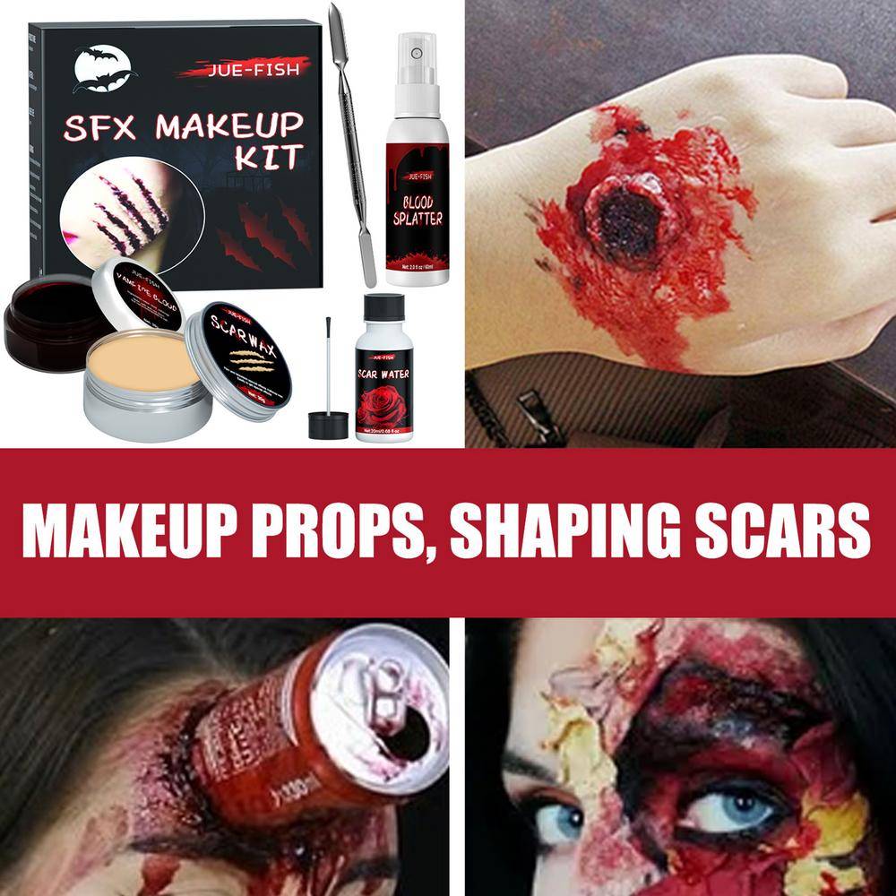 Этот набор для макияжа идеально подходит для создания поддельных РАН, шрамов, блокаторов бровей. Легко складывается в любой реалистичный вид, который вы можете себе представить. Используйте свое воображение и творчество с помощью этого набора для макияжа на Хэллоуин. Он может шокировать и Пугать всех с реалистичным макияжем, который заставит их кричать.