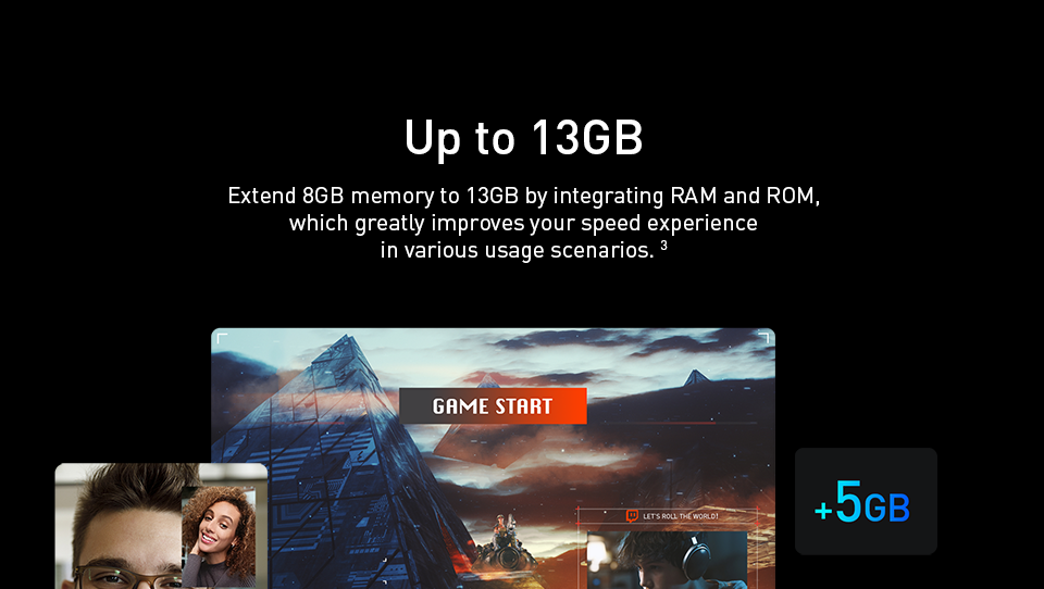 До 13 ГБ расширенной оперативной памяти 8 ГБ + 5 ГБ
