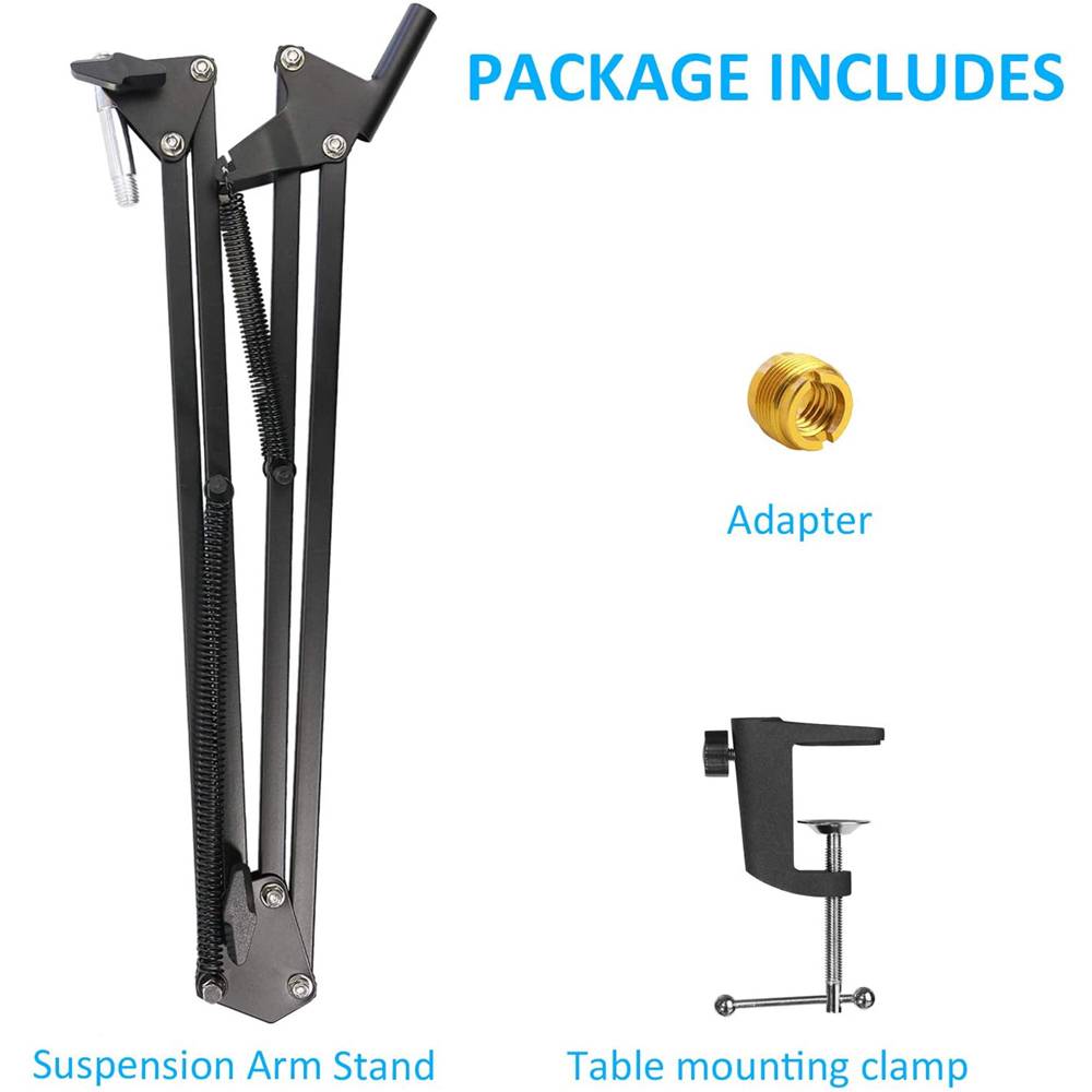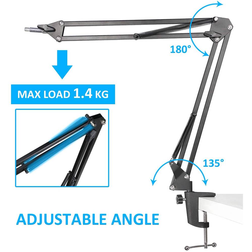Подставка для микрофона-двойные пружины подвески каждой стрелы защищают микрофон от тряски и внезапного падения. Прочная стальная конструкция, легко устанавливается и складывается.