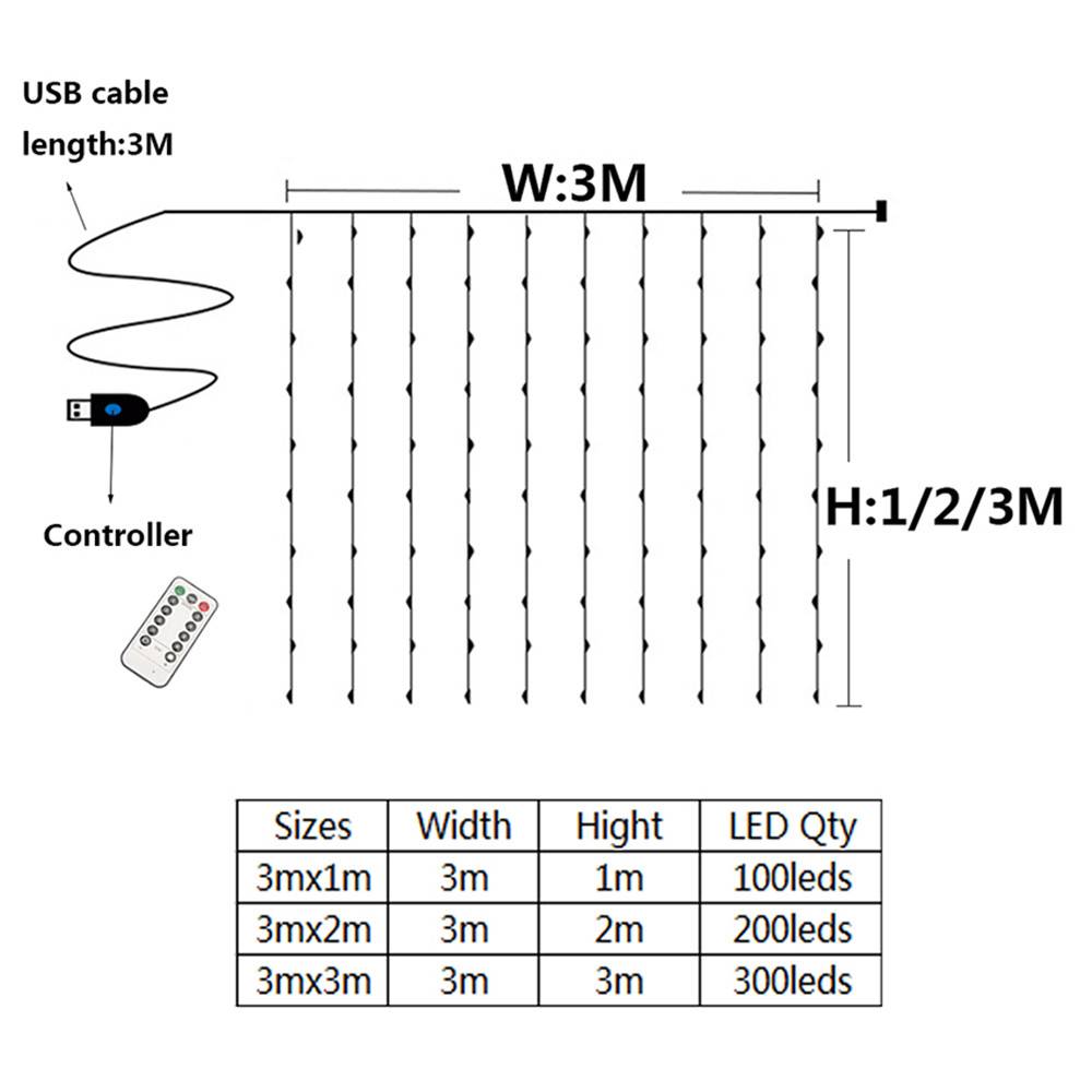3 м Радужная светодиодная сказочная гирлянда, занавес, струнный светильник, дистанционное управление, USB, Рождественская лампа для праздника, дома, спальни, украшения на окно