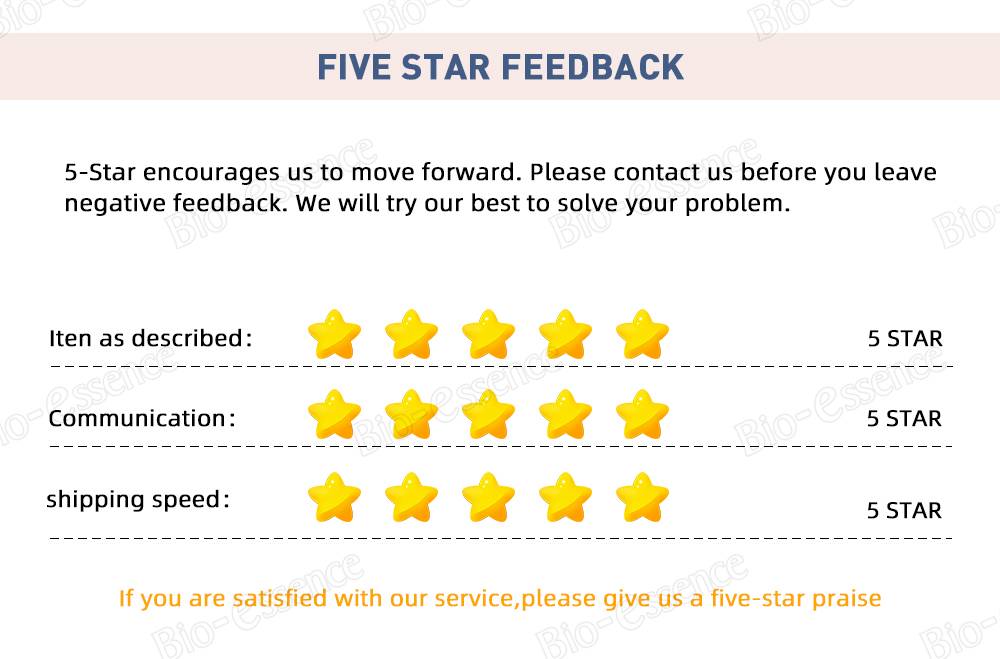 Удовлетворение ваших запросов и положительная обратная связь очень важны для нас. Пожалуйста, оставьте положительный отзыв и 5 звезд, если вы удовлетворены нашими товарами и услугами. Если у вас возникли проблемы с нашими товарами или услугами, пожалуйста, свяжитесь с нами, прежде чем оставить отрицательный отзыв. Мы сделаем все возможное, чтобы решить любую проблему и предоставить Вам лучшее обслуживание клиентов. Если у вас есть вопросы, Пожалуйста, свяжитесь с нами. Хорошего дня. Если у вас возникнут другие вопросы, свяжитесь с нами. Розалинд всегда предоставит вам лучший сервис и продукт.