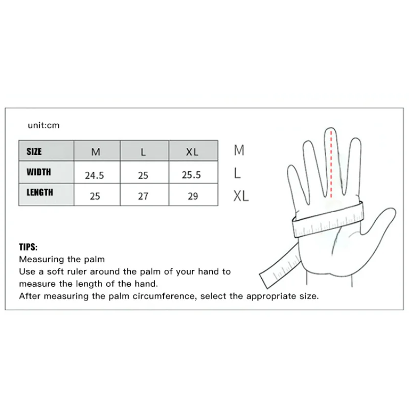 XL подходит для окружности ладони 25-26 см, длина 29 см.