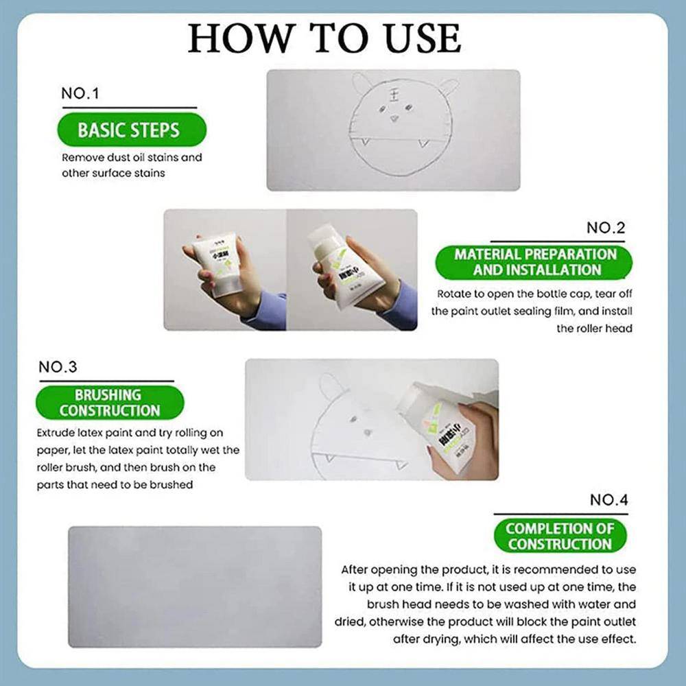 5. [легко использовать] граффити краска для стен удобна в использовании и сначала удаляет пыль, смазку и теряет вещества от стены, свернута на стену после выдавливания латексной краски, И практично для второго использования путем очистки и сушки.