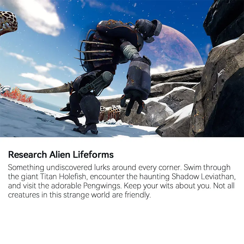 Что-то скрывается за каждым углом. Плавайте через гигантскую голефию Titan, сталкивайтесь с преследующими тенями Левиафан и посетите восхитительные крылья Pengwings. Держите свой ум о вас. Не все создания в этом странном мире дружелюбны.