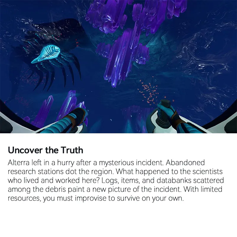 Что на самом деле случилось с вашей сестренкой? Кто были пришельцы, которые раньше сюда приходили? Почему они были на этой планете? Можем ли мы найти утешение от горя по правде? Ниже нуля расширяет историю Вселенной Subnautica, погружаясь глубоко в тайну, введенную в оригинальной игре.