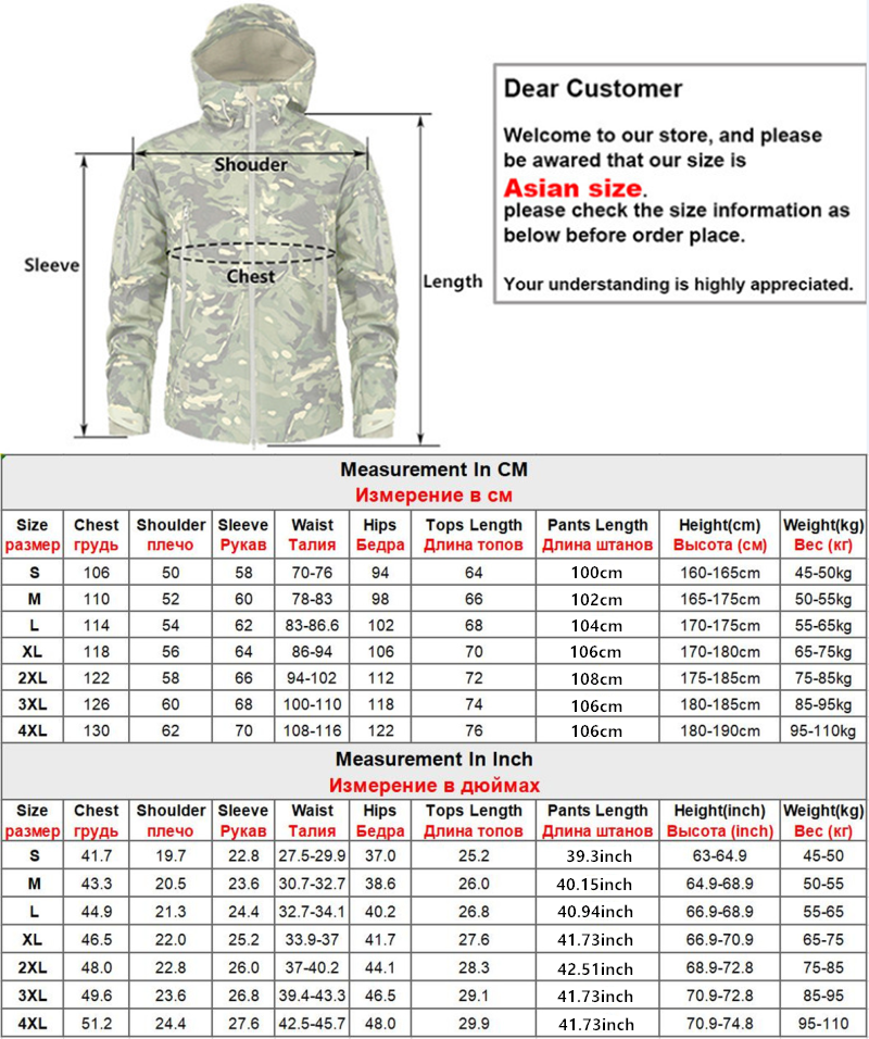 1 куртка или 1 штаныОпишите размер продукта, включая различные размеры разных SKUs. Если вы не уверены в своем размере. Вы можете сообщить нам свой рост и вес (вес в килограммах и рост в сантиметрах).
