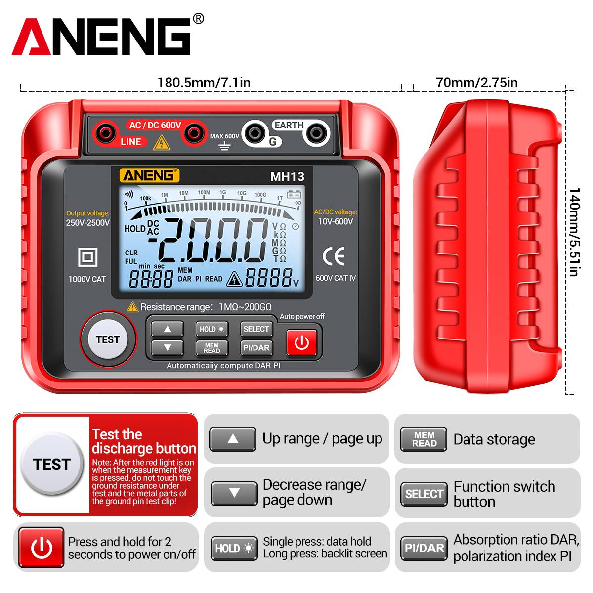 Тестер сопротивления изоляции: этот инструмент применяет функцию автоматического сброса напряжения, с высокой стабильностью и надежностью, имеет максимальное количество 2000, 100 групп хранения данных и диапазон измерения сопротивления изоляции 1MΩ-200G Ω.