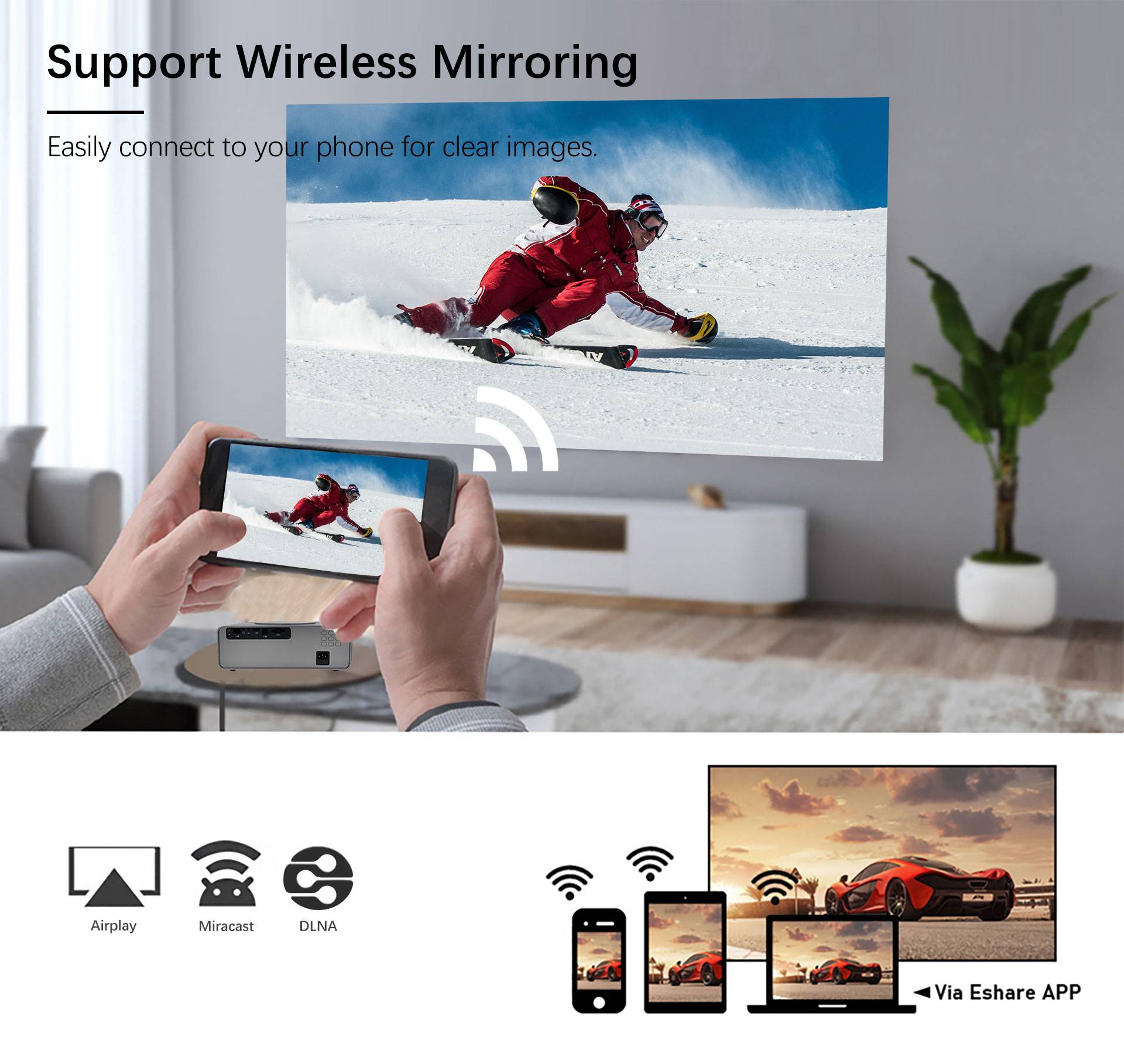 Легко подключайте мобильный телефон, чтобы передавать изображение на проектор, и синхронизируйте экран с ультра-низкой задержкой, позволяя вам наслаждаться большими фотографиями.
