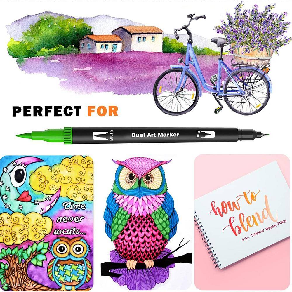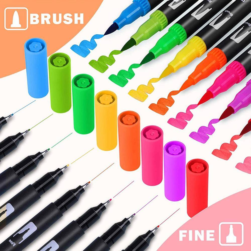 2. Двойные наконечники дизайн: нейлоновое волокно кончик кисти для раскрашивания, затенение, заполнение и смешивания; 0,4 мм тонкий наконечник для обеспечивает точное встроенное управление для рисования, письма и рисования. Художники любят использовать наши маркеры для кистей из-за чистых толстых или тонких линий, которые могут быть легко выполнены.