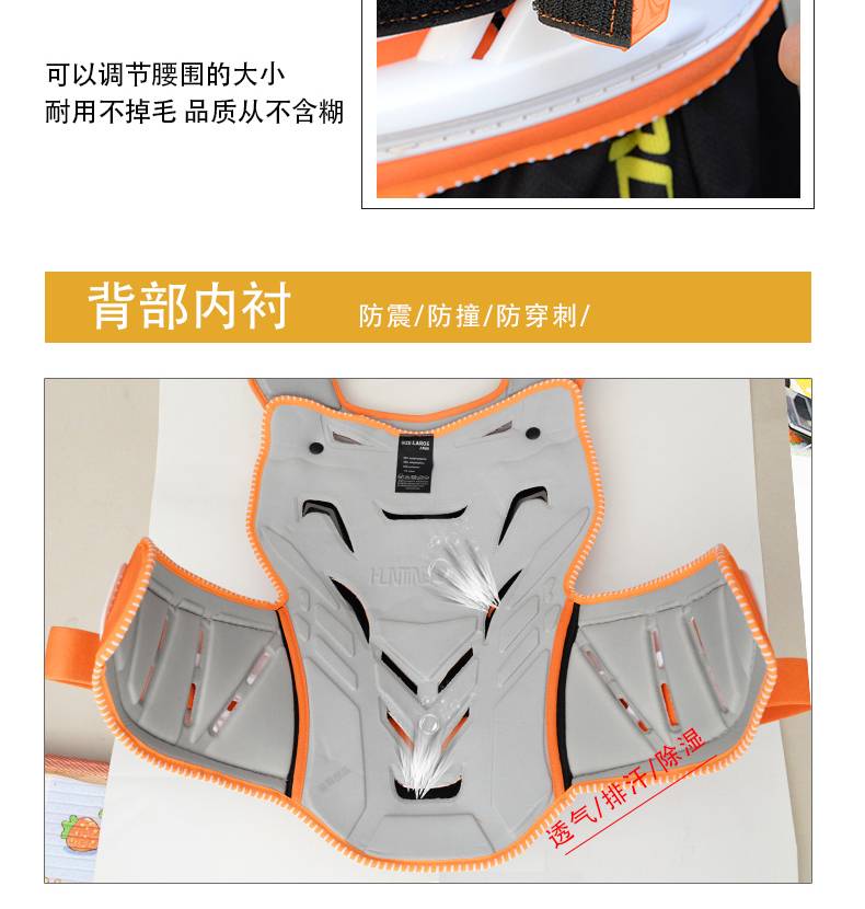 Protective Armor Is Made Of High-density Wear-resistant Nylon. Moveable Liner Allows For Easy Cleaning, Multiple Large Vents Of Plastic Shells And Foam Are For Maximum Ventilation, All Of The Advantages Keep You Secure During Riding.