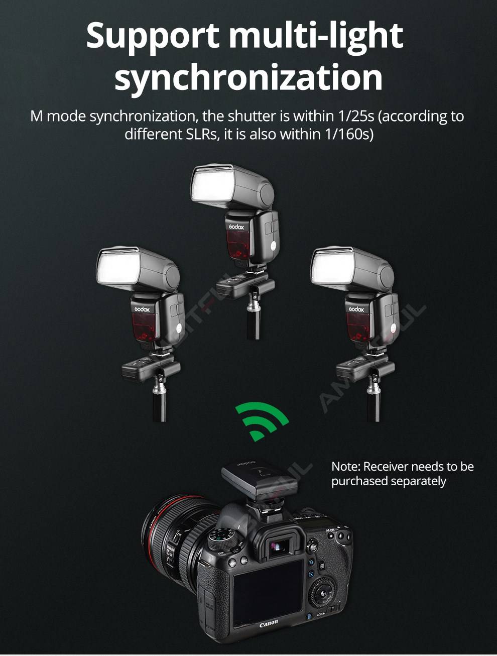Модель: CT-16Канал: 16 каналовЧастота передачи: 433 МГцПередатчик Мощность: 12V 23A литиевая батарея (не входит в комплект)Приемник Мощность: 2x1,5 V элемент питания AAА (в комплект не входит)Наружное Рабочее расстояние: макс. 30 м/90 футов (открытая площадь, без недомогания)Расстояние работы в помещении: макс. 25 м/75 футовСинхронная скорость: макс. 1/250 секРазмер передатчика: 60x42x30ммРазмер приемника: 90x50x32ммЦвет: черныйМатериал: металл + пластикУправлениеКак использовать:Вставьте гнездо для горячего башмака передатчика в гнездо для горячего башмака камеры, Подключите вспышку к приемнику и включите приемник. Убедитесь, что переключатель каналов как передатчика, так и приемника на одном канале. Нажмите кнопку тестирования на передатчике, чтобы проверить перед съемкой.Если у вашей камеры Нет гнезда для подключения передатчика, вы можете подключить передатчик к камере с помощью кабеля синхронизации ПК. (Требуется только старая камера).С помощью этого триггера вы можете запускать как flashgun, так и studio lights. Если вы используете ресивер на большом студийном стробоскопическом фонарике или раме переменного тока, вы можете просто подключите приемник к студийный стробоскоп фонарик с 3,5 мм или 6,35 мм разъем для синхронизации ПК (не прилагаются).Несовместимый: Горячий башмак Canon 2000D, Sony Minolta и т. Д. Посылка список CT-16Передатчик 1 xCT-16Приемник CT-16-1 шт.1 x кабель синхронизацииАдаптер для преобразования-1 шт.1 x Руководство пользователя Посылка список 1xT добавить 2x RПередатчик CT-16-1 шт.2 x CT-16 приемник2 x Кабель синхронизацииАдаптер для преобразования-2 шт.1 x Руководство пользователя Посылка список 1xT add 3x RПередатчик 1 xCT-163 x CT-16 приемник3 x кабель синхронизации3 x адаптер преобразования1 x Руководство пользователя Посылка список 1xT add 4x RПередатчик CT-16-1 шт.4 x CT-16 приемник4 x кабель синхронизации4 x адаптер преобразования1 x Руководство пользователя Примечание: другие товары не включены