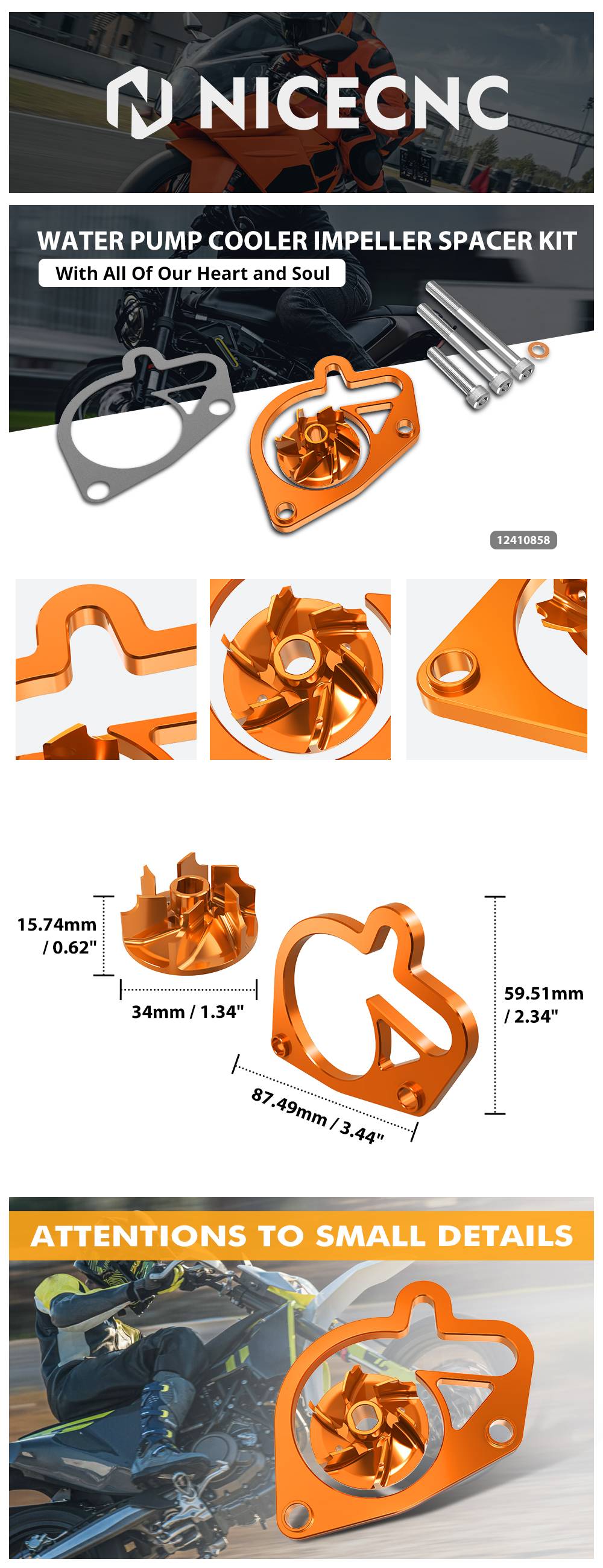 【Быстрое охлаждение алюминиевой прокладки увеличить объем охлаждающей жидкости и максимизировать площадь охлаждения с помощью 6061 алюминиевой прокладки, эффективно предотвращая перегрев и уменьшая активацию вашего радиатора. Потенциал вашего велосипеда может быть разблокирован в полной мере с помощью алюминиевой прокладки и модернизированного крыльчатки.