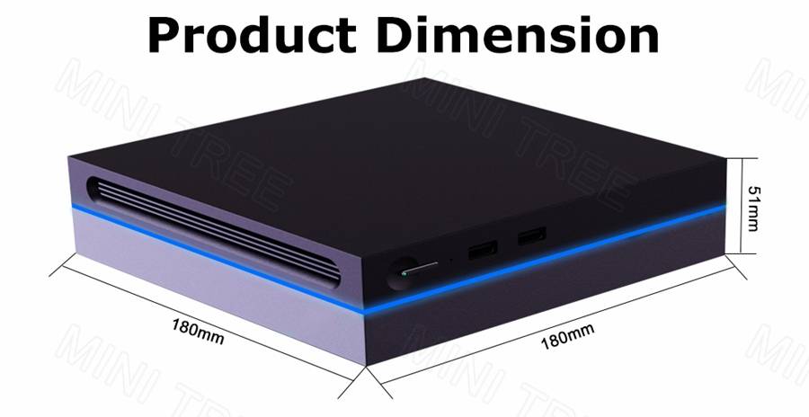 -Полнофункциональный Type-C, поддержка функции Thunderbolt 4. (менее 15 Вт, избегайте зарядки самого ПК) -Встроенные двойные медные вентиляторы для отвода тепла, обеспечивают стабильную работу компьютера 7x24 часа. -Поддержка TPM2.0, PXE, RTC, пробуждения по локальной сети, автоматического включения и т. Д. -Компактный размер 180*180*53 мм, 2xUSB3.0, 6xUSB2.0, один круг атмосферных огней.Что в пакете